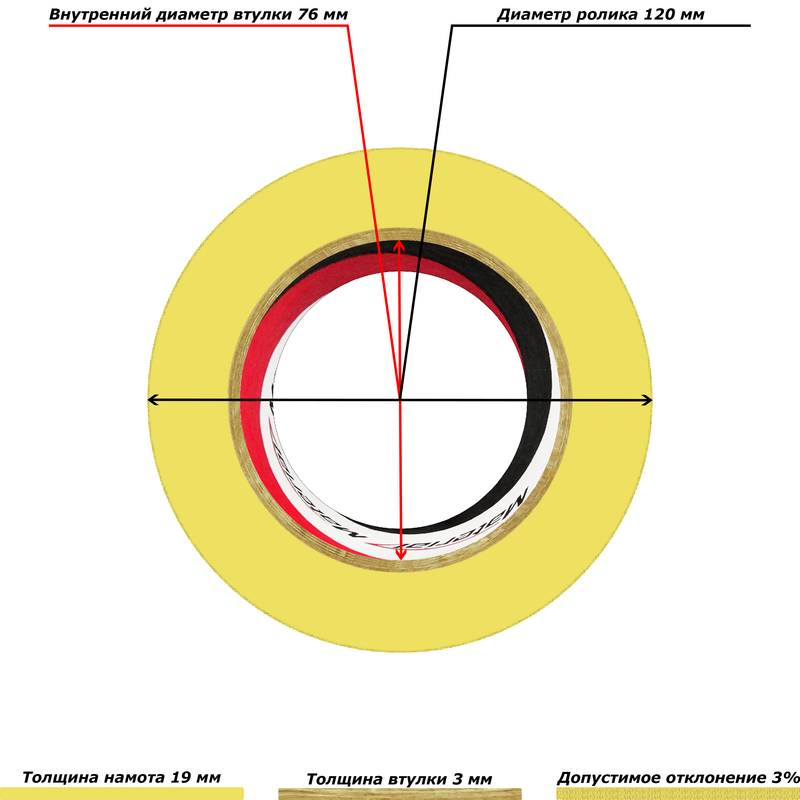 Для более точного расчёта длины намота, при помощи веса ролика, рекомендуем пользоваться следующей формулой: от веса брутто вычитаем 23 гр (самый распространенный вес втулки), а остаток делим на 1.65 (константа для 1-го метра скотча при толщине 38 мкм и ширине 45 мм). Полученное число и будет являться настоящей длиной клейкой ленты. Рассмотрим на примере скотча 150 м / 45 мм / 38 мкм - (271 гр – 23 гр) / 1.65 = 150 м. Но также, нужно учитывать, что из-за разнотолщинности клейкой ленты, по весу и толщине слоя намота, допустимы отклонения параметров в 3%.