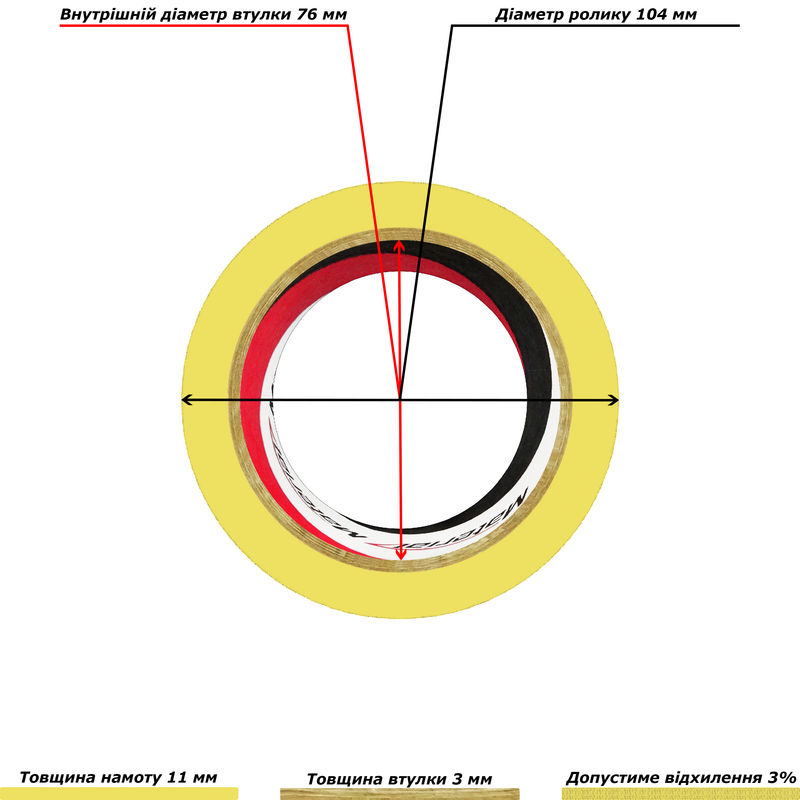 Для більш точного розрахунку довжини намоту, за допомогою ваги ролика, рекомендуємо користуватися наступною формулою: від ваги брутто віднімаємо 23 гр (найпоширеніша вага втулки), а залишок ділимо на 1.65 (стала для 1-го метру скотча при товщині 38 мкм та ширині 45 мм). Отримане число й буде справжньою довжиною клейкої стрічки. Розглянемо на прикладі скотчу 80 м / 45 мм / 38 мкм - (155 гр – 23 гр) / 1.65 = 80 м. Але також, потрібно враховувати, що через різнотовщинність клейкої стрічки, по вазі й товщині шару намоту, допустимі відхилення параметрів в 3%.